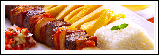 Cubos de filet mignon, calabresa, cebola, tomate e bacon grelhados, acompanha arroz, farofa e batata gomo.